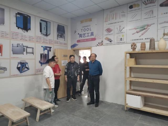 经理钟忠首先对母校老师的到来表示热烈欢迎,介绍了企业定位、发展历程、生产规模、运营范围等的基本情况,就当前公司正在高速发展的重要时期,陶艺教育人才的储备与培养是关键,希望通过以设立“水流星”奖学金为契机,加强与母校在人才培养、就业创业、成果转化等方面的合作。随即在他的陪同下,艺术学院师生参观了陶艺设备研发区、陶艺文化创意体验区、陶艺课程开发区等。
