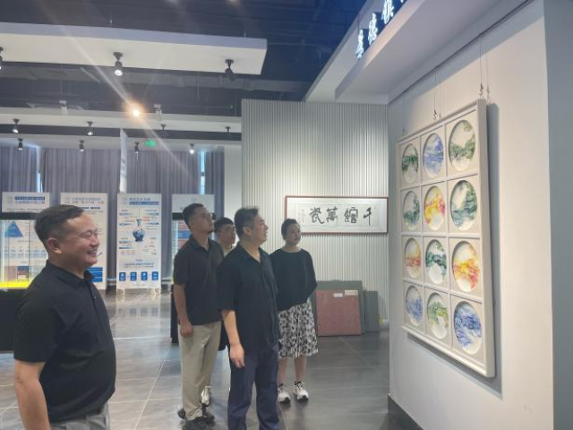 随后,方漫一行人来到景德镇创意陶瓷设计有限公司。董事长章文带领大家参观了景德镇陶瓷文化遗产数字资产版本库展览馆,并分享了行业对陶瓷人才的最新需求,尤其是在陶瓷创意设计方面的需求。方漫详细介绍了艺术学院的专业设置、办学特色、人才培养模式等情况。双方共同探讨了深化合作的具体事项,包括课程内容与行业需求接轨、项目转化、提供学生实习岗位以及建立长期的人才输送机制,以实现人才培养与企业需求的无缝对接。同时依托艺术学院获批的景德镇市陶瓷数字化重点实训室联合企业共同申报省级数字化重点项目,校企整合资源共同申报省级数字化重点实训室。张博表示下一步将根据企业反馈,优化课程设置,强化实践教学,培养更符合行业需求的高素质应用型人才。