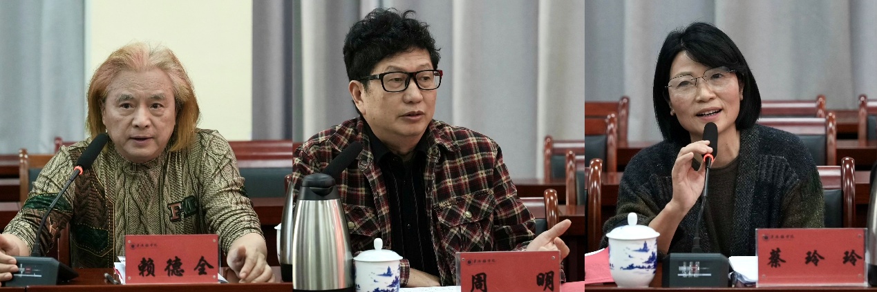 座谈会上,校友们围绕“‘十五五’时期学院长远发展”与“服务地方经济社会建设”两大主题展开深入交流。中国工艺美术大师赖德全结合自身多年艺术实践,强调陶瓷文化要在守正基础上推动创造性转化,建议艺术学院加强传统工艺与现代审美的融合教育。江西省陶瓷艺术大师周明从非遗传承角度提出,应构建“校企地”协同机制,推动青花技艺走进课堂、走入产业。中国陶瓷设计艺术大师蔡玲玲则呼吁搭建国际化学术交流平台,提升艺术学院在陶瓷艺术教育领域的引领力。其他与会校友如范敏祺、吴天麟、孙立新等也分别从产教融合、学科建设、人才培养等方面提出建设性意见。校友创业代表,如汪洋、罗恒、陈铁松等,则结合自身在文创产品开发、品牌运营与创新创业方面的实践,为学院拓展产学研合作路径提供了新思路。