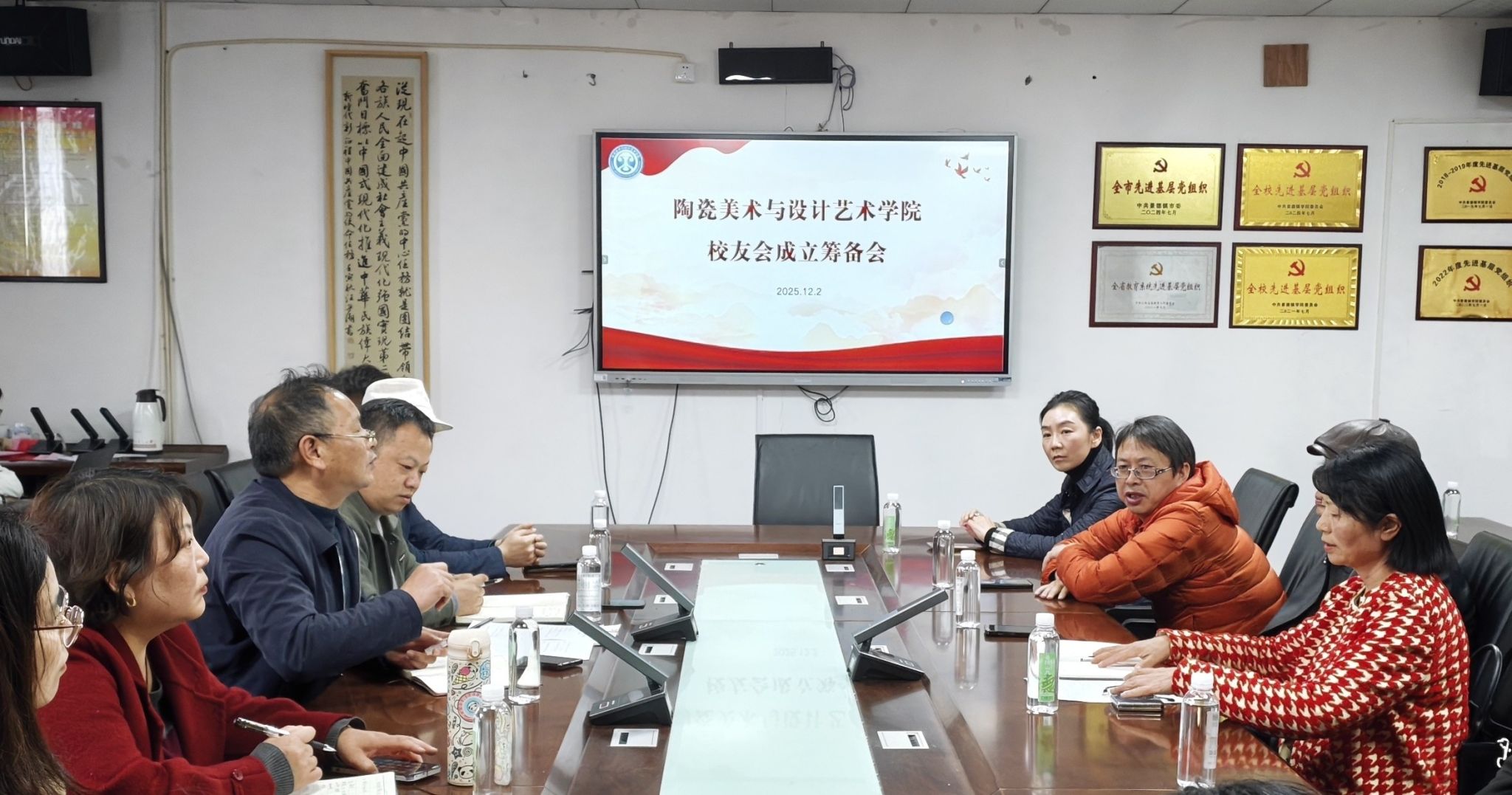 12月2日,景德镇学院陶瓷美术与设计艺术学院校友分会成立筹备会在党员活动室顺利召开。学院党委书记陈后辉,党委副书记胡文毅,副院长程幸及各年级各行业校友代表齐聚一堂,共商校友分会成立事宜。会议由陈后辉主持。