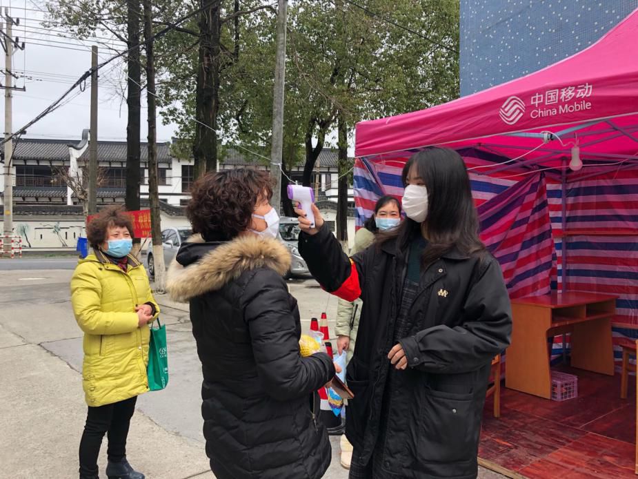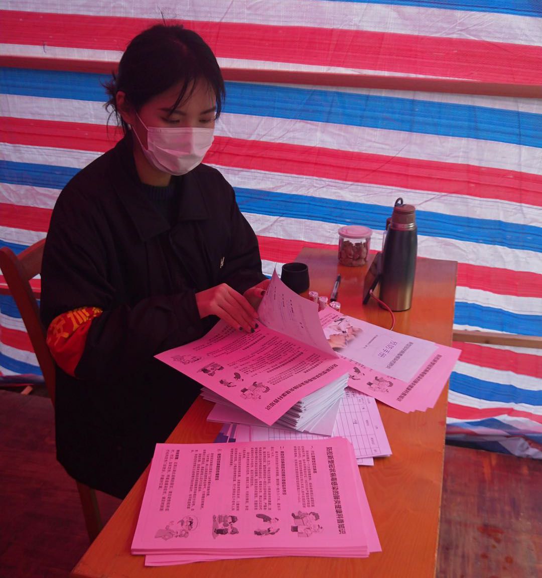 2月初,黄晨曦同学被安排在了浙江省嘉兴市桐乡市屠甸镇街道社区进行防疫值班工作。她对进出小区的居民进行温度测量,对车辆进行详细登记以及向出入小区的居民分发防疫手册,帮助他们做好自身防护。