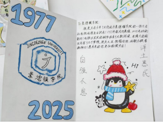 小小的卡片,看似毫不起眼,然而却因为其中所蕴含的真挚情感以及独具匠心的创意而显得熠熠生辉,散发出别样的光彩。每一张精心制作的贺卡,都承载着景院学子满满的心意,对学校最美好、最诚挚的祝福。愿亲爱的景院,步履坚定,乘风而行,永远朝气蓬勃。在新的征程上,继续书写精彩篇章,桃李满天下,前路更宽广!