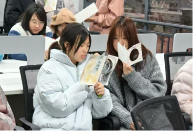 在“校史校情知多少”趣味问答环节,同学们围绕校园建筑、院系设置、办学历史等内容进行抢答,如“唱一段校歌?”、“陶瓷美术与设计艺术学院共开设多少本科专业?”等贴近学习生活的问题,既考验同学们对校园的熟悉程度,也增强了大家对学院的认同与归属感。同学们踊跃参与、积极应答。现场欢声不断,在轻松愉快的互动中,校史知识与爱校情怀进一步融入人心,也为贺卡创作注入了更多真挚的情感与记忆。