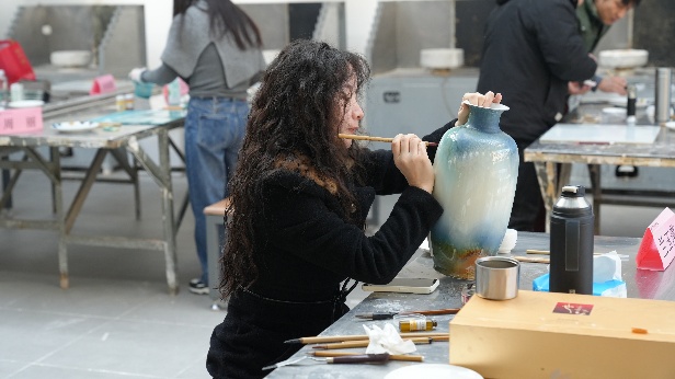 当天上午,陶瓷美术与设计艺术学院在实训中心举办了“同窗艺友聚景院 共绘华章绽芳华”陶瓷笔绘活动,吸引了众多校友重返熟悉的教室,在陶瓷的温润与笔墨的灵动中,校友们重温校园时光,共叙同窗情谊。同时蔡玲玲还在TR203会议室举办了“在生活中扎根,在时代中绽放”——在陶瓷艺术中寻找自我与时代的声音经验分享会,分享了自身的艺术求索之路,为同学们带来了一场兼具深度与温度的艺术盛宴。