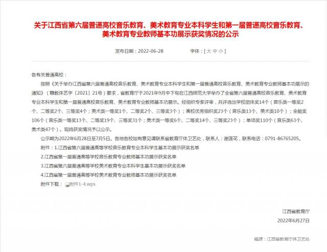 6月27日,在江西省教育厅关于省第六届普通高等学校美术教育专业本科学生基本功大赛和省第一届普通高等学校美术教育专业本科教师基本功展示获奖情况公示中,获悉,景德镇学院陶瓷美术与设计艺术学院在省第六届高校美术教育专业本科学生基本功大赛和省第一届普通高等学校美术教育专业本科教师基本功展示中喜获团体奖和师生个人奖共10项。