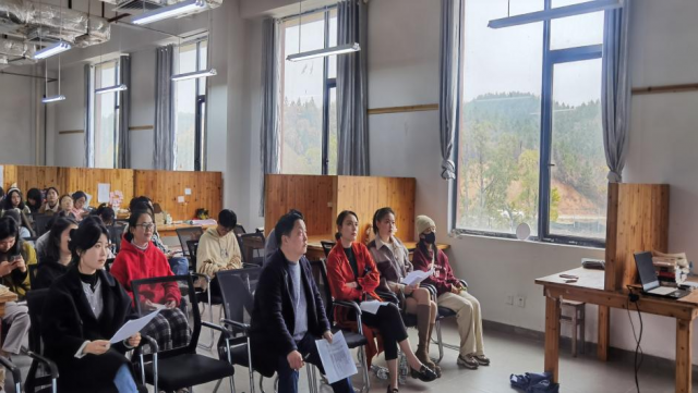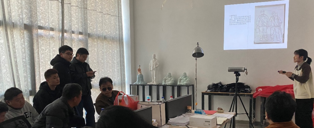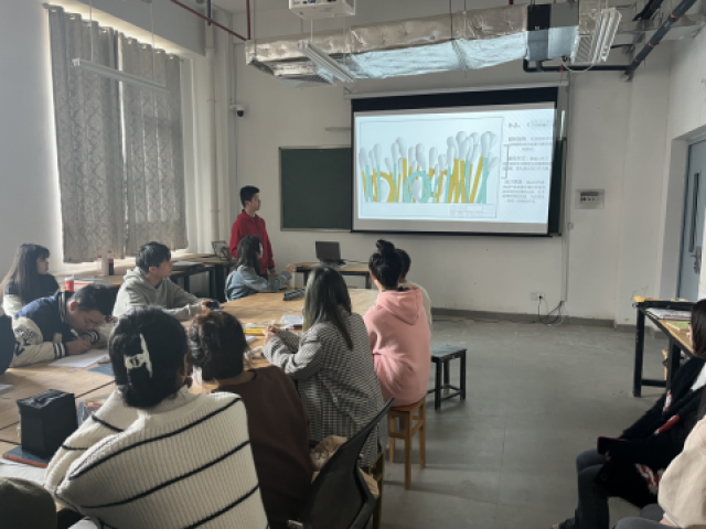 在汇看现场,同学们通过PPT演示进行创作构思讲解向汇看导师小组展示毕业创作设计的设计图纸。汇看导师组对作品的思想内容、表现形式、创作进度进行把关和指导,聚焦作品,出谋划策,解决作品中学生可能会遇到的难题。讨论内容具体到作品的实施过程、材料选择和展示方式等方面,针对这些问题,师生们积极地讨论与交流,汇看现场氛围热烈,学生们认真听取导师组的建议并记录相应的修改要求。