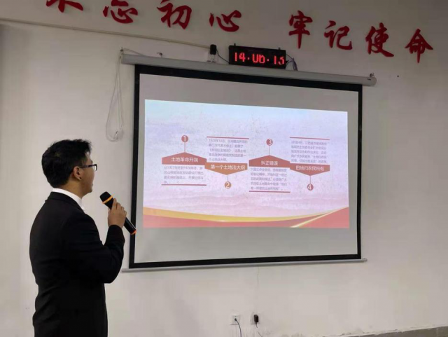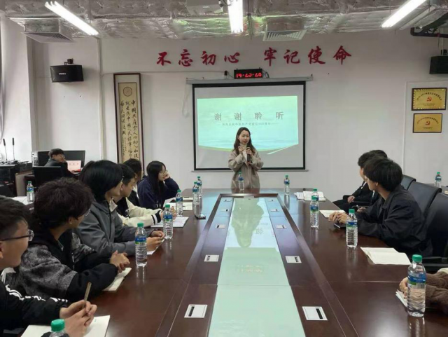 由团小组成员唐显豪以中国共产党成立、土地改革、抗日战争、解放战争、中华人民共和国成立等五个方面为切入点,讲述了中国共产党从历经成立初期的艰难困境到新中国成立的奋斗之路。讲解过程中,设置了知识竞答环节,大家都信心满满,踊跃抢答,在问答的过程中加深了对党史文化的理解。
