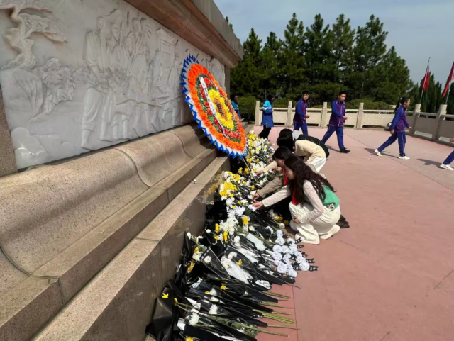 活动当天,烈士陵园松柏苍翠,庄严肃穆。下午2点,全体师生整齐列队,在革命烈士纪念碑前举行祭扫仪式。见习生们与基地少先队员代表共同向烈士敬献花篮,全体人员肃立默哀,表达对革命先烈的无限哀思与崇高敬意。见习学生代表表示:“作为新时代青年,我们必将传承红色基因,肩负起时代使命。”