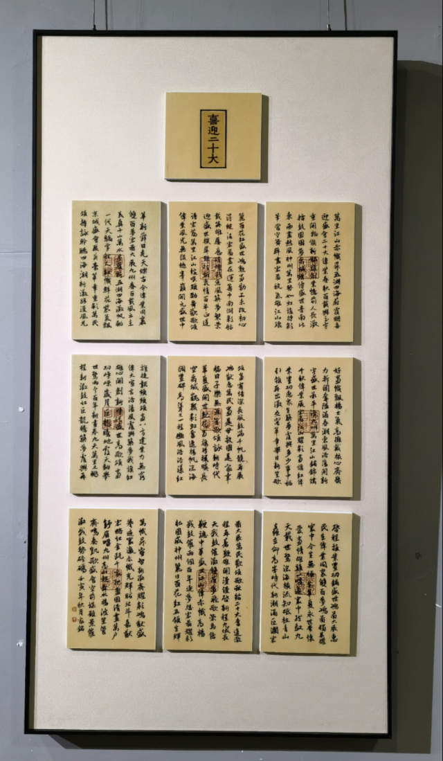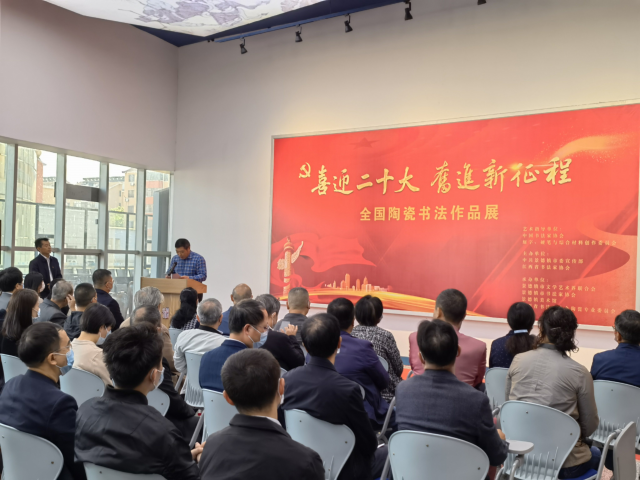 (本网讯:图文|胡一霄)2022年10月15日上午,由中共景德镇市委宣传部、江西省书法家协会联合主办的“喜迎二十大 奋进新征程——全国陶瓷书法作品展”在景德镇美术馆展出。