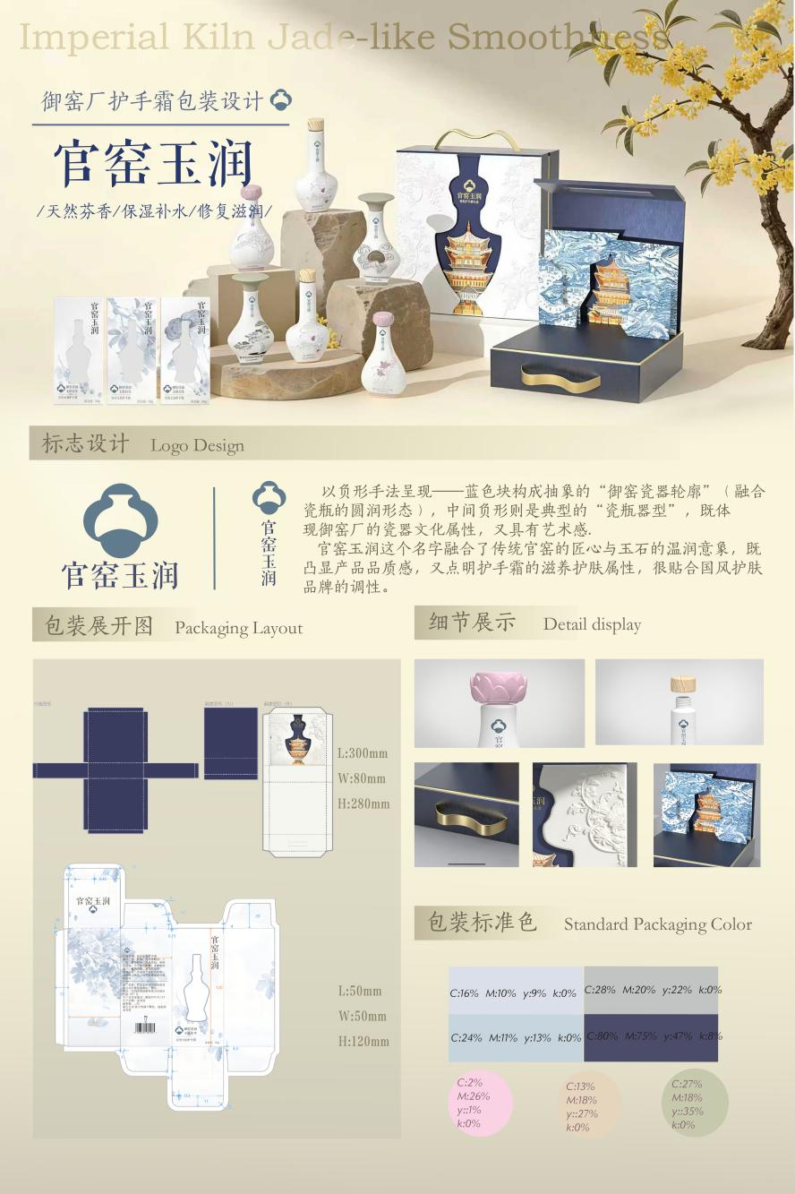 23级产设2班:吴仕荣、涂悦璇、周佳《官窑玉润—护手霜包装设计》