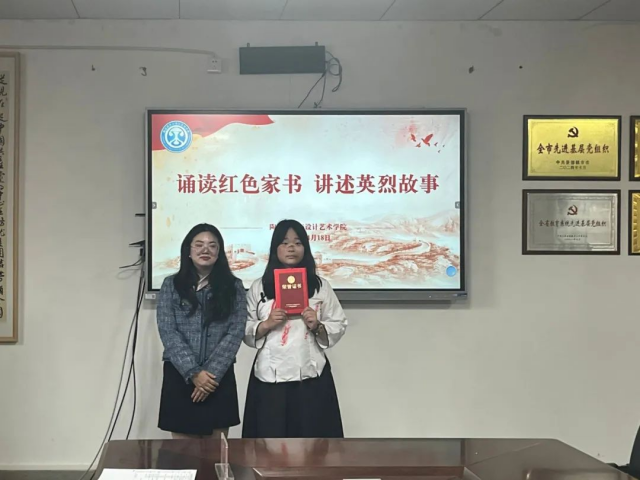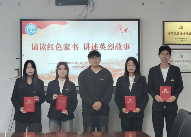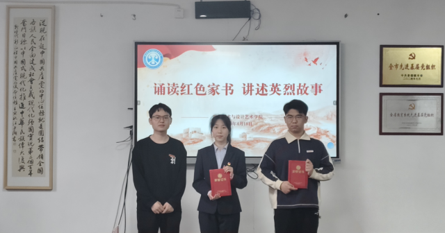 为进一步深化红色文化铸魂育人,缅怀革命先烈,传承红色基因、牢记时代使命,4月20日,陶瓷美术与设计艺术学院在党员活动室举办“回望峥嵘读初心”——诵读红色家书讲述英烈故事”活动,艺术学院团委副书记曹星,艺术学院新媒体指导老师王锦瑶,辅导员江小亮,艺术学院(学生)团委副书记李孟宇、李涵颖参加本次活动并担任评委。