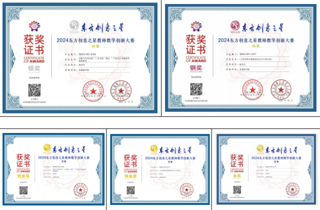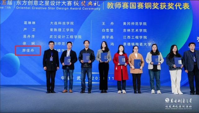 近日,由工业和信息化部国际经济技术合作中心批复举办的第五届东方创意之星教师教学创新大赛全国总决赛获奖名单正式揭晓,颁奖典礼系列活动在武汉顺利举办,我院教师游佳丹荣获国赛“银奖”1项,“铜奖”1项。在此前的省赛中,我院教师游佳丹荣获“特金奖”2项,张宝青获“金奖”1项。