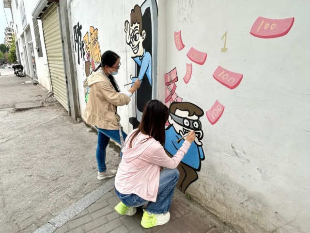 艺术是生活的镜像,而志愿是青春的注脚。为提高社区居民安全意识,筑牢社区反诈防线,陶瓷美术与设计艺术学院艺·星火青年志愿者服务队于4月11日走进珠山区昌河街道梦园社区,开展“执笔绘防诈,筑墙守平安”主题墙绘志愿活动。此次活动以艺术为载体,将墙绘与反诈宣传相结合,通过生动形象的墙绘作品,让反诈知识“跃然墙上”,让安全防范意识深入民心,用实际行动诠释新时代青年的责任与担当。