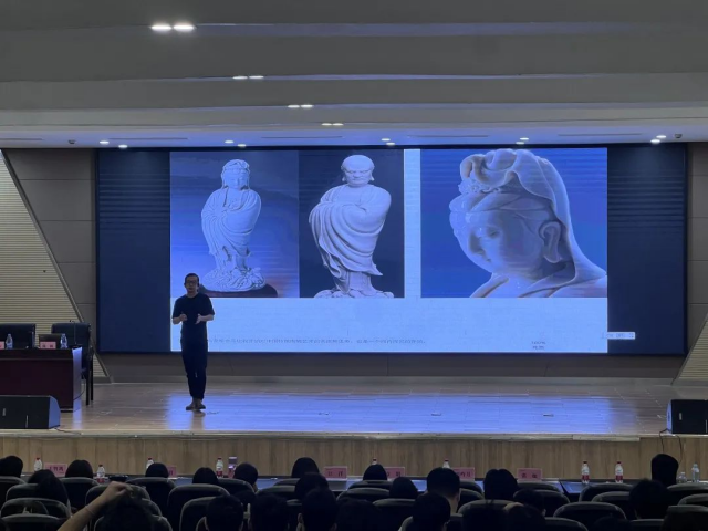 首先,陈硕介绍了自己1995年至2005年的艺术创作经历,讲述了自己通过何朝宗的经典雕塑作品引发对中国传统陶瓷艺术的思考以及进行的一系列创作。这一部分主要是为了让学生们了解到陶艺创作的历史和背景,以及如何从传统中汲取灵感。