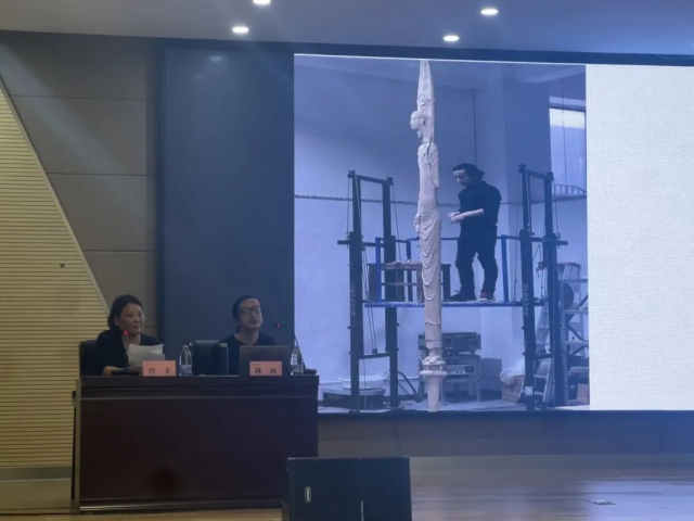 接着,陈硕讲述了2008年至2015年主要的陶艺作品,即“瓷片拼接”大型瓷作品的创作,从工艺、材料、艺术性等方面对《甲壳》系列、《太湖石》、《龙椅》、《佛》等作品进行赏析。这一部分主要是为了让学生们了解到陶艺创作的技术和艺术性,以及如何将不同的材料和工艺有机结合起来,创造出更加独特的作品。