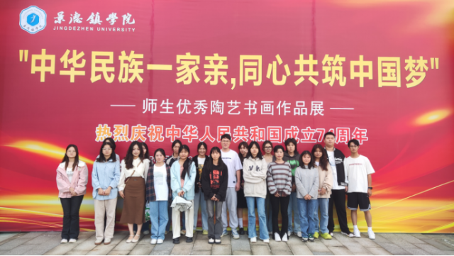 (本网讯:图文|樊忆玲)泥火匠心,抟土幻化;金秋送爽,陶瓷辉熠。近日,陶瓷美术与设计艺术学院积极组织各年级学生参观学习“中华民族一家亲,同心共筑中国梦”师生优秀陶艺书画作品展活动。此次作品展主题鲜明、内容丰富,融思想性、艺术性于一体,展现了深厚的文化素养和爱党爱国的高尚情怀。