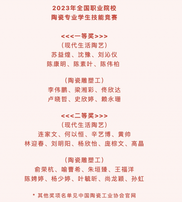 (本网讯:图|曹振海 文|周雅琪)产教融合,技能先行!职业技能人才的培养和选拔已成为国家人才战略的重要组成部分。陶瓷美术与设计艺术学院一直以来致力于服务地方经济,促进产教融合,借助技能大赛拓宽教学模式,助力学生培养,提升学生技能。这种努力的成果已初步显现。近日,2023年全国陶瓷行业职业技能竞赛总决赛暨2023年全国轻工陶瓷行业职业技能竞赛总决赛顺利举办,我院学子经过市赛、省赛、国赛多轮角逐,参与陶瓷综合装饰、陶瓷拉坯成型、陶瓷雕塑、现代生活陶艺多个项目,喜获金、银、铜多个大奖,为学院的教学创新和产教融合工作增添了光彩。