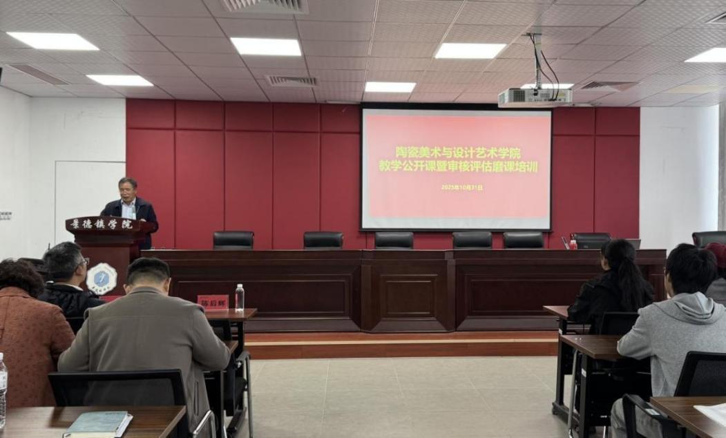 为进一步提升陶瓷美术与设计艺术学院教师的教学水平,确保审核评估工作的顺利开展,提高人才培养质量,学院于10月31日上午开展教学公开课暨审核评估磨课培训。景德镇学院教务处副处长洪耀球、质评处副处长陈玉明,陶瓷美术与设计艺术学院党委书记陈后辉、党委副书记、纪委书记胡文毅、副院长程幸、朱希睿、党委委员姜强,以及审核评估期间任课教师参加会议。会议由陈后辉主持。