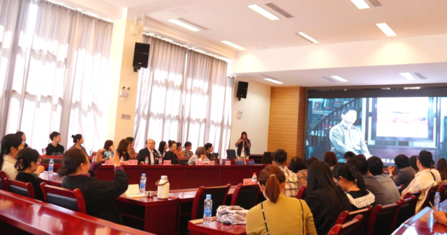 张博播放了艺术学院宣传片,向与会嘉宾介绍了学院的发展历程和近年来在教育教学、科研、社会服务等方面所取得的成果,并详细介绍学院在人才培养、课程设置、实践教学等方面的改革和创新举措,全面展示了学院的专业特色和教学实力。同时,她还对深圳大芬美术馆和景德镇三宝蓬美术馆的嘉宾表示了感谢,并希望未来能够有更多的合作机会。