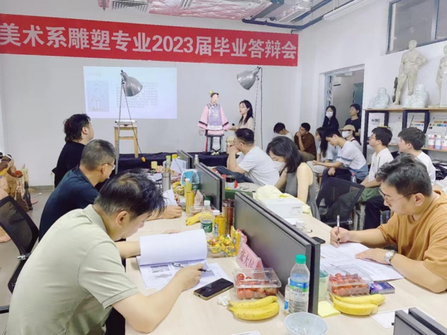 本次答辩工作共有来自工艺美术、环境设计、美术学、艺术教育、产品设计、雕塑等专业的毕业生和教师评委参与。经过四年的沉淀,同学们充分发挥自己对所学专业的理解和掌握,呈现了出色的毕业设计(论文)成果。在答辩会上,同学们用自己的语言和思考方式,深入浅出地阐述了设计方案的思路、实践过程以及取得的成效,反映了他们对所学知识的深入理解和应用能力。