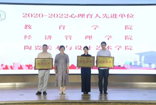 (本网讯:图文|陈媛媛)为引导培育学生自尊自信、理性平和、积极向上的健康心态,树立正确的世界观、人生观和价值观,进一步地深化和完善我校心理育人体系,实现全过程、全员、全方位心理育人的实效。2023年6月2日晚,我校心理情景剧大赛暨5•25心理健康教育月闭幕式活动在图文报告厅举行。我院被评为2020-2022年景德镇学院心理健康教育工作队伍的先进工作单位,多名教师和同学被评为心理育人先进个人,并且我院学生在心理知识宣讲短视频大赛和心理情景剧大赛中,取得优异的成绩。