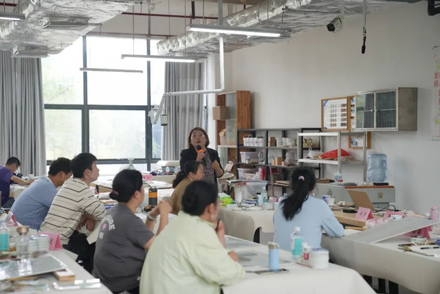 景德镇学院陶瓷美术与设计艺术学院承办的江西文化艺术基金2023年度资助项目《中国当代瓷上界画创新人才培养》旨在将艺术理论、绘画实践与采风写生相结合,传承弘扬中国陶瓷与界画艺术,重点培养学员深入了解中国界画艺术和陶瓷技法研究成果,熟练掌握当代瓷上界画艺术创作要领,为当代中国陶瓷与界画艺术发展注入新鲜血液,进而全面更新中国瓷上界画艺术概念,提高中国瓷上界画艺术表达能力,拓展中国陶瓷艺术表现题材范围,增强陶瓷与界画艺术创新意识和创作能力,完善中国瓷上界画艺术人才培养体系,推动陶瓷和界画两大艺术产业实现可持续性发展。同时,瓷上界画培训项目的开展也是高校主动服务社会的功能体现,真正让高校科研成果为地方企业行业服务。