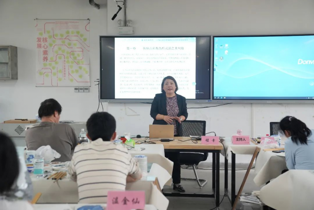 程幸首先回顾了古彩这一传统艺术形式的历史渊源和发展脉络。她指出,古彩作为中国传统艺术中的瑰宝,历经数百年的沉淀与积累,至今仍保持着旺盛的生命力。古彩装饰的艺术风格独特,色彩对比强烈,线条流畅,构图饱满,形象生动,寓意深远,深受人们喜爱。程强调,在学习古彩装饰的过程中,既要掌握传统的精髓,也要勇于创新,为古彩艺术注入新的活力。