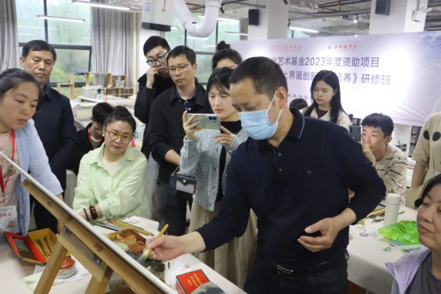景德镇学院陶瓷美术与设计艺术学院承办的江西文化艺术基金2023年度资助项目《中国当代瓷上界画创新人才培养》旨在将艺术理论、绘画实践与采风写生相结合,传承弘扬中国陶瓷与界画艺术,重点培养学员深入了解中国界画艺术和陶瓷技法研究成果,熟练掌握当代瓷上界画艺术创作要领,为当代中国陶瓷与界画艺术发展注入新鲜血液,进而全面更新中国瓷上界画艺术概念,提高中国瓷上界画艺术表达能力,拓展中国陶瓷艺术表现题材范围,增强陶瓷与界画艺术创新意识和创作能力,完善中国瓷上界画艺术人才培养体系,推动陶瓷和界画两大艺术产业实现可持续性发展。同时,瓷上界画培训项目的开展也是高校主动服务社会的功能体现,真正让高校科研成果为地方企业行业服务。