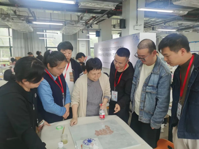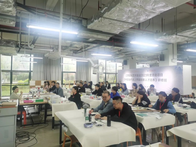 景德镇学院陶瓷美术与设计艺术学院承办的江西文化艺术基金2023年度资助项目《中国当代瓷上界画创新人才培养》旨在将艺术理论、绘画实践与采风写生相结合,传承弘扬中国陶瓷与界画艺术,重点培养学员深入了解中国界画艺术和陶瓷技法研究成果,熟练掌握当代瓷上界画艺术创作要领,为当代中国陶瓷与界画艺术发展注入新鲜血液,进而全面更新中国瓷上界画艺术概念,提高中国瓷上界画艺术表达能力,拓展中国陶瓷艺术表现题材范围,增强陶瓷与界画艺术创新意识和创作能力,完善中国瓷上界画艺术人才培养体系,推动陶瓷和界画两大艺术产业实现可持续性发展。同时,瓷上界画培训项目的开展也是高校主动服务社会的功能体现,真正让高校科研成果为地方企业行业服务。