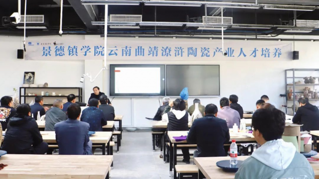 本次人才培养项目旨在精准培育千名陶瓷产业梯次人才队伍,构建产学研深度融合的创新平台,以推动陶瓷产业的革新发展,助力景德镇学院将陶瓷这张璀璨名片推向更广阔的舞台,并携手助力曲靖市推动潦浒陶瓷产业转型升级。汪开潮以严谨的态度和扎实的学识,从陶瓷书法的概念入手,全面而深入地剖析了陶瓷书法的内涵与外延,学员们深受启发。