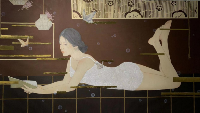工笔重彩《恬》,19美术学2班 唐丹