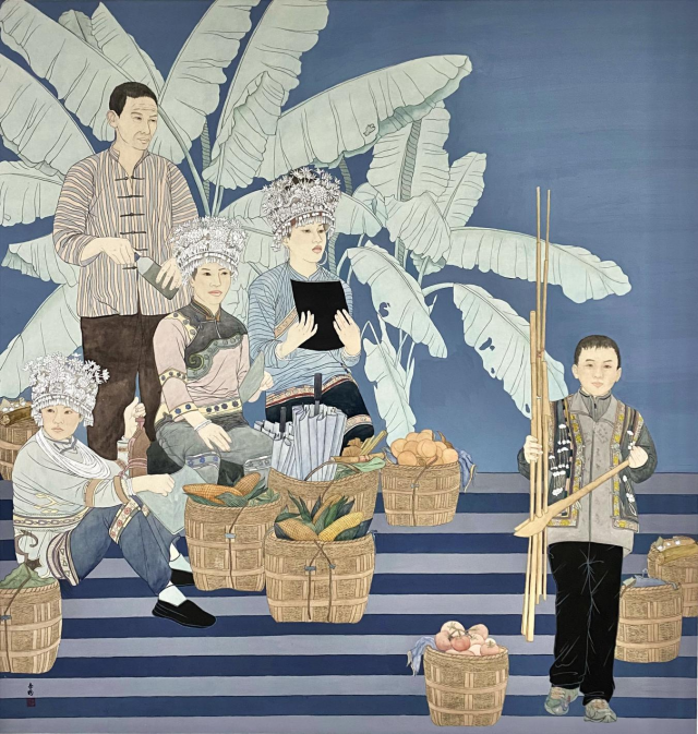 工笔重彩画《赶场》,18美术学1班 李盼