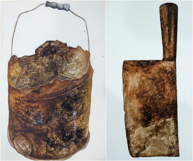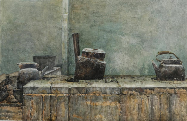 水彩综合材料《尘封的记忆NO6》,18美术学4班 朱颖忠