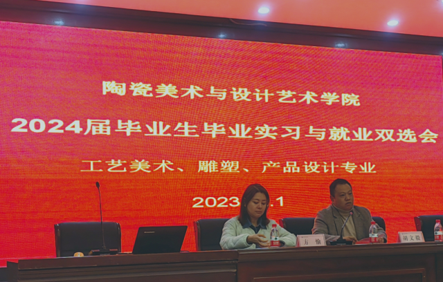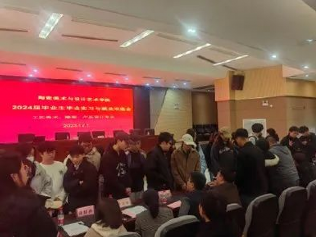 (本网讯:图文|熊晨)为扎实推进艺术学院2024届毕业生毕业实习就业工作,加强校企合作,构建实践教学体系,12月14日下午于图文报告厅召开了2024届毕业生毕业实习就业双选会,含工艺美术、雕塑、产品设计三个专业。学院邀请了与专业相关的六家企业参与会议,为学生和企业搭建一个双向选择的平台,提供学生实习与就业的机会。艺术学院党委副书记胡文毅、副院长朱希睿,院教学科科长方愉,工艺美术、雕塑、产品设专业全体毕业生指导老师及毕业生。同时,还有景德镇陶博城文旅产业运营发展有限公司,景德镇子云瓷业有限公司,景德镇镇尚陶瓷有限公司,景德镇市玉柏瓷业有限公司,景德镇市大器窑房文化传播有限公司,景德镇迷陶派陶瓷有限公司,活动由胡文毅主持。
