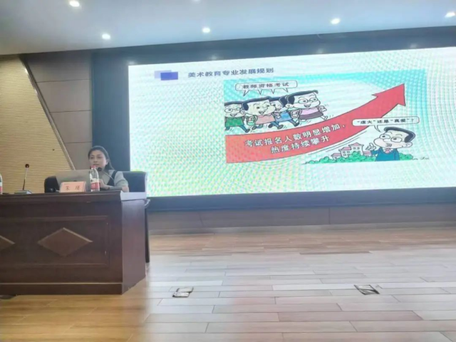 此外,朱瑛老师还就政策方面进行了深入讲解。她介绍了国家对美术教育的重视和支持政策,以及各地在推动美术教育事业发展方面的具体措施和成效。这些政策分析不仅让学生们对美术教育专业的未来发展前景有了更加清晰的认识,也激发了他们投身美术教育事业的热情和信心。
