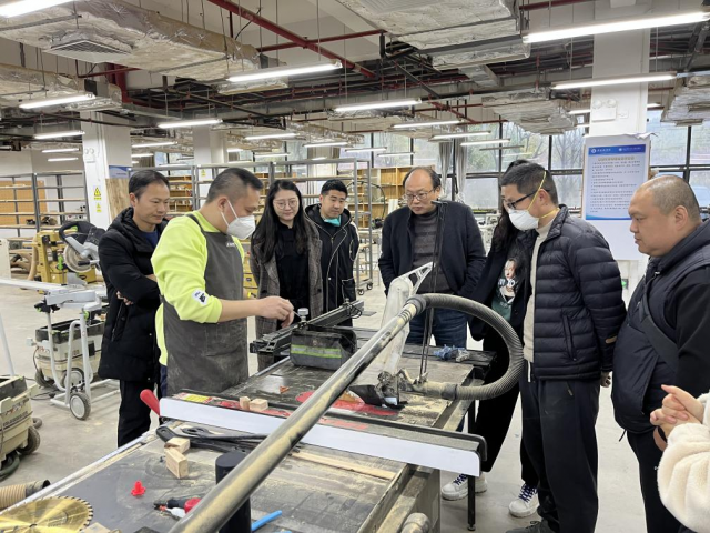 3月21日,艺术学院实训中心对各系教师开展木工实训校企共创课程培训。此次培训内容主要涉及木工实训室安全条例学习、木工设备的使用注意事项及维护保养方法、木艺加工工艺流程总体介绍、确定校园共创特色项目的设计方案及现场实践等内容。培训现场学习氛围浓厚,技术人员对师生提出的相关问题进行了现场答疑。