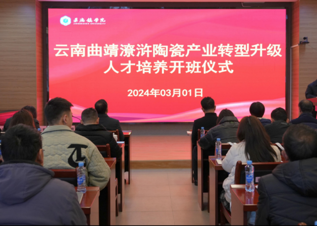 为深入贯彻落实习近平总书记考察江西时的重要讲话精神,牢记“建好景德镇国家陶瓷文化传承创新试验区,打造对外文化交流新平台”的殷殷嘱托,强化技能人才培养、提高人才培养质量。3月1日上午,我校在一号报告厅举行云南曲靖市潦浒陶瓷产业转型升级培养开班仪式,校党委书记叶观荣出席开班仪式,宣布开班并讲话,校党委委员、副校长方漫,曲靖市麒麟区人大常委会党组书记、主任谢茂华等出席,校党委委员、宣传部部长赵雪政主持开班仪式。