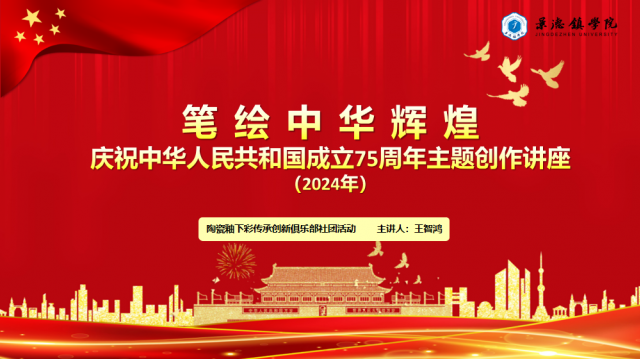 11月22日,景德镇学院陶瓷美术与设计艺术学院举办题为《笔绘中华辉煌——庆祝中华人民共和国成立75周年主题创作讲座》,由该院教师王智鸿主讲。本次讲座也是我院陶瓷釉下彩传承创新俱乐部社团的一次品牌活动,深入探讨如何用古彩的装饰手法来创作建国75周年主题作品,吸引了众多社团学生的关注与参与。