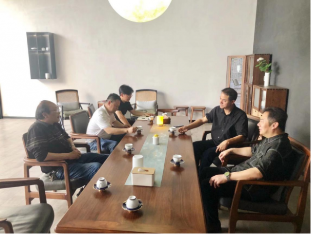 陶瓷美术与设计艺术学院党委书记赵雪政、党委副书记胡文毅、陶瓷文化传承创新产业学院教师代表冯绍华、王超陪同调研。