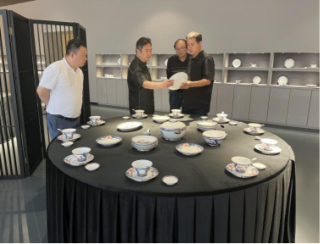 方漫一行在董事长李辉丰的带领下参观了企业产品的展示区、绘瓷区,并对公司传统及新研发的玲珑瓷产品进行了详细的介绍。实地了解了企业整体运营、产品开发情况,并与企业负责人开展了深入交流。