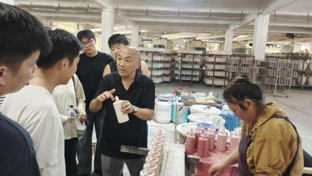 (本网讯:图|熊孟瑛璟 文|熊孟瑛璟)9月4日,21级产品设计3班、产品设计4班在产品设计系系主任李白璐老师和熊孟瑛璟老师带领下到景德镇万业陶瓷有限公司进行课程调研和考察。景德镇万业陶瓷有限公司是景德镇陶瓷、日用瓷、礼品瓷、纪念瓷等产品专业生产和加工的公司,拥有完整、科学的质量管理体系。