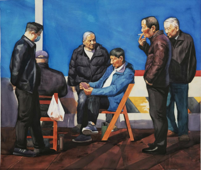 创作思路:艺术来源于生活,跟生活息息相关。立足当下,描绘真实的生活故事。我的创作素材选取了普通中老年人的生活状态,描绘他们晚年安详平静的慢节奏的生活,没有什么过多的欲望,只有平静祥和,跟繁华躁动的市区相望相逢。