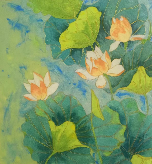 作品介绍:采荷撷夏,塘月横波。荷叶密密地覆盖了水面。如果我丟一把莲子它们来年能否长出一片荷花,用静默的力量推开那些浮萍。它们交叠着,错落着,被阳光所照亮:鲜明,洁净,馨香。在这个日益被污染的世界,唤醒脑诲中那些美丽的字眼。