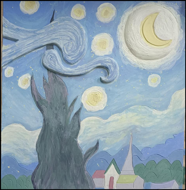 作品介绍:创作灵感来源于梵高的油画作品《星空》,想将富有动感的夜色在瓷板上进行再现。