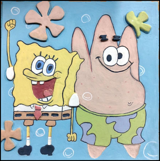 作品名称:《海绵宝宝与派大星》40*40cm 瓷泥