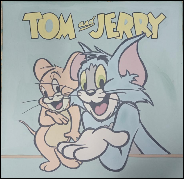 作品名称:《猫和老鼠》40*40cm 瓷泥