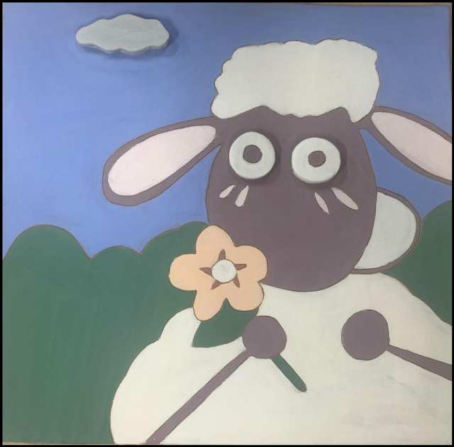 作品名称:《羊咩咩》40*40cm瓷泥