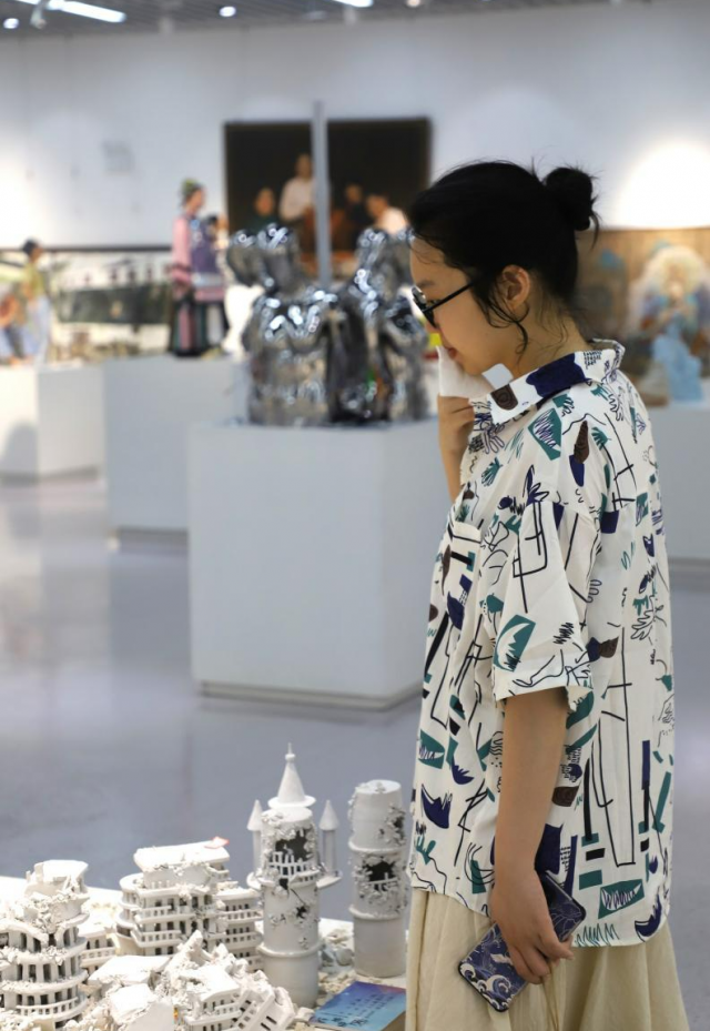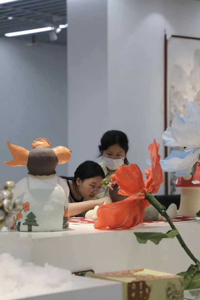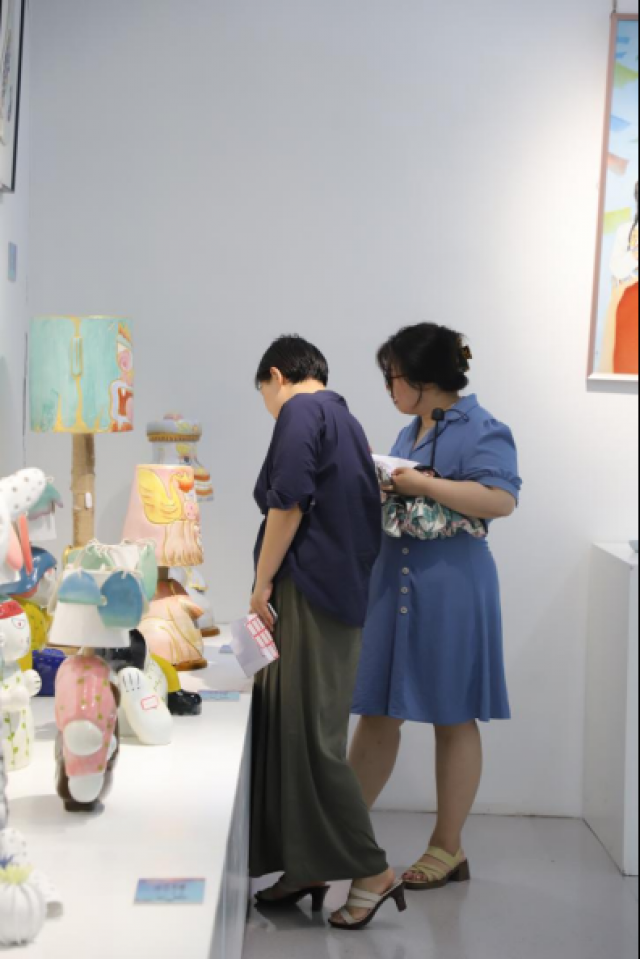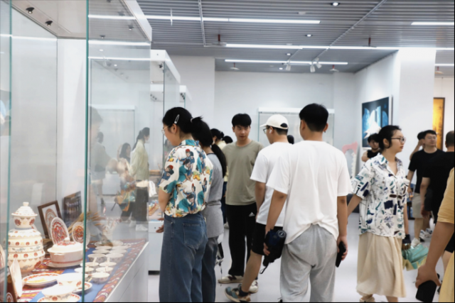 在展览现场,许多同学被展出作品所吸引,纷纷驻足观看,并与参展的毕业生进行互动交流。展出的优秀毕业作品承载着学生们的辛勤劳动和智慧结晶,展示了景德镇学院陶瓷美术与设计艺术学院毕业生们的多元化创作思路和实践能力。