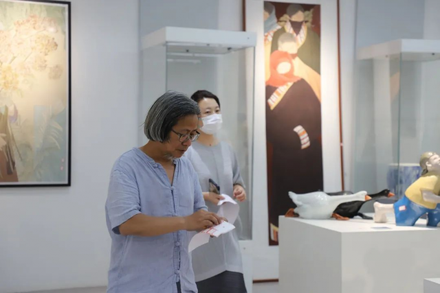 学院领导、评委专家和各系主任也在展览现场参观作品,并对优秀作品进行讨论和评选。他们认真观看每件作品,仔细品味每处细节,并针对每个作品的材料、技法、创意等方面进行评价。