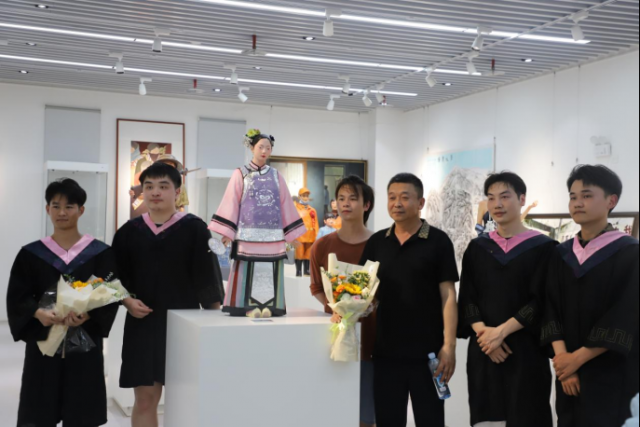 毕业生在现场和作品合影留念